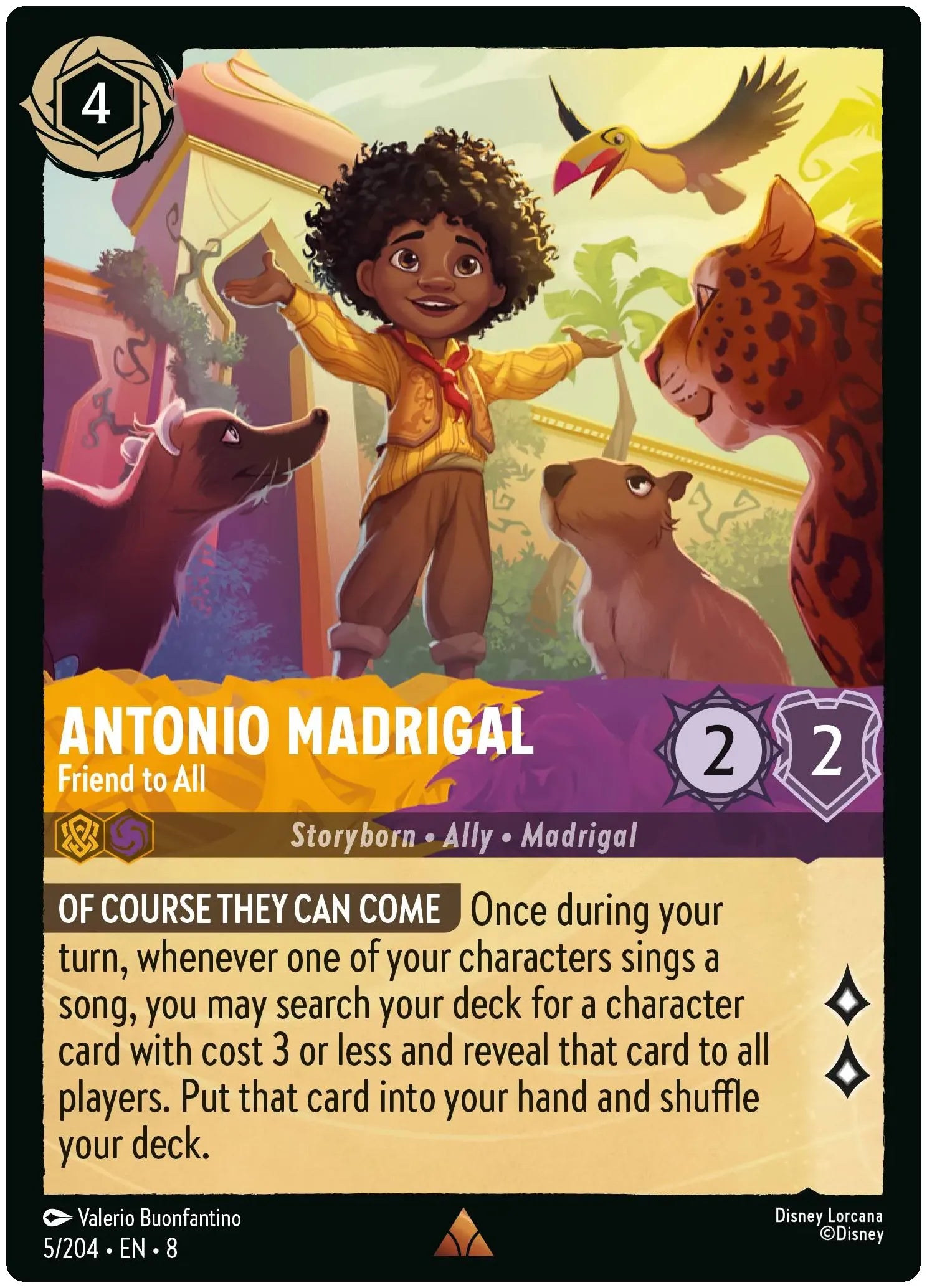 Once during your turn, whenever one of your characters sings a song, you may search your deck for a character card with cost 3 or less and reveal that card to all players. Put that card into your hand and shuffle your deck.