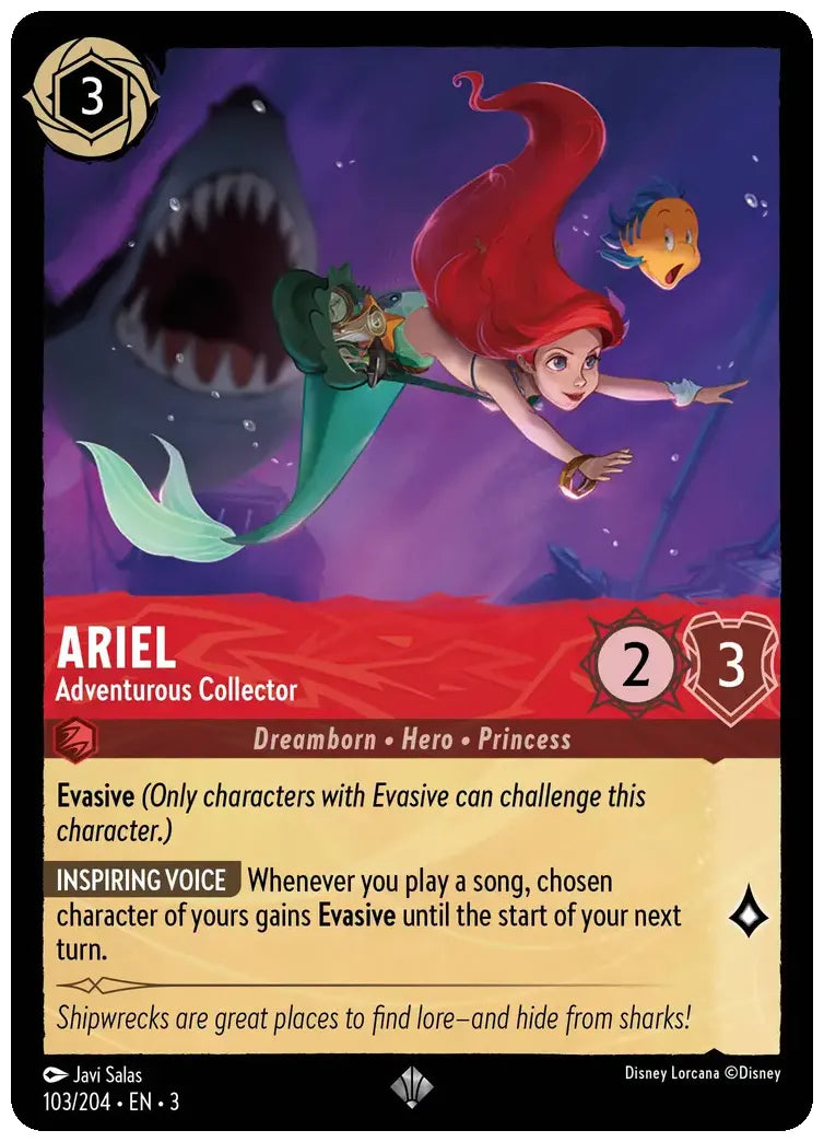 Whenever you play a song, chosen character of yours gains Evasive until the start of your next turn.
