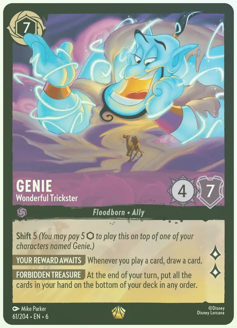 Shift 5 (You may pay 5 ? to play this on top of one of your characters named Genie.)