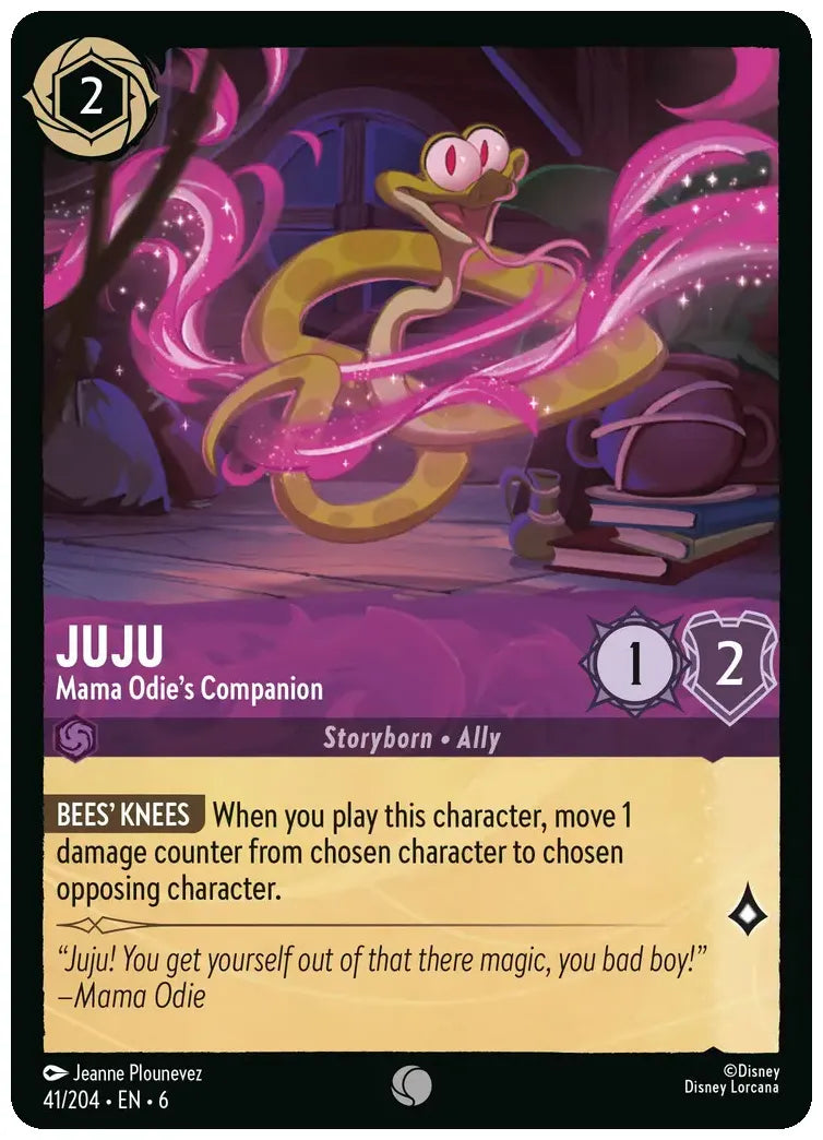 When you play this character, move 1 damage counter from chosen character to chosen opposing character.