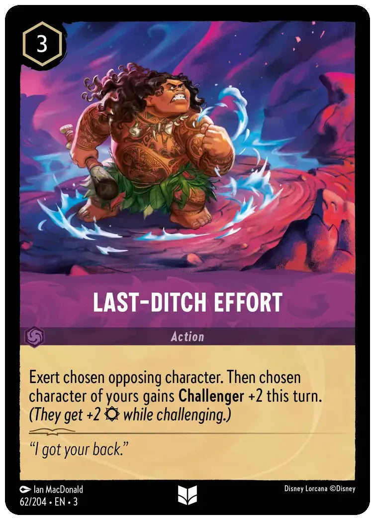 Exert chosen opposing character. Then chosen character of yours gains Challenger +2 this turn. (They get +2 strength while challenging.)