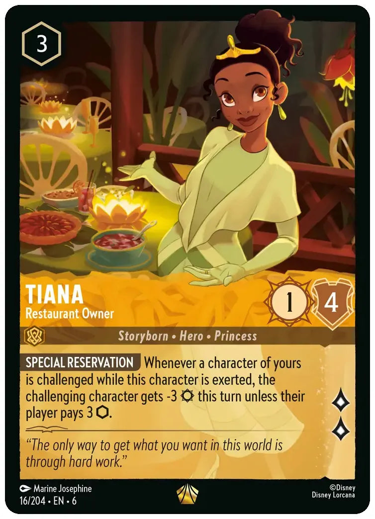 Whenever a character of yours is challenged while this character is exerted, the challenging character gets -3 ? this turn unless their player pays 3 ?.