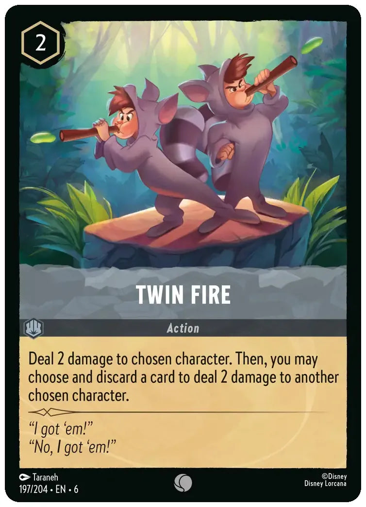 Deal 2 damage to chosen character. Then, you may choose and discard a card to deal 2 damage to another chosen character.