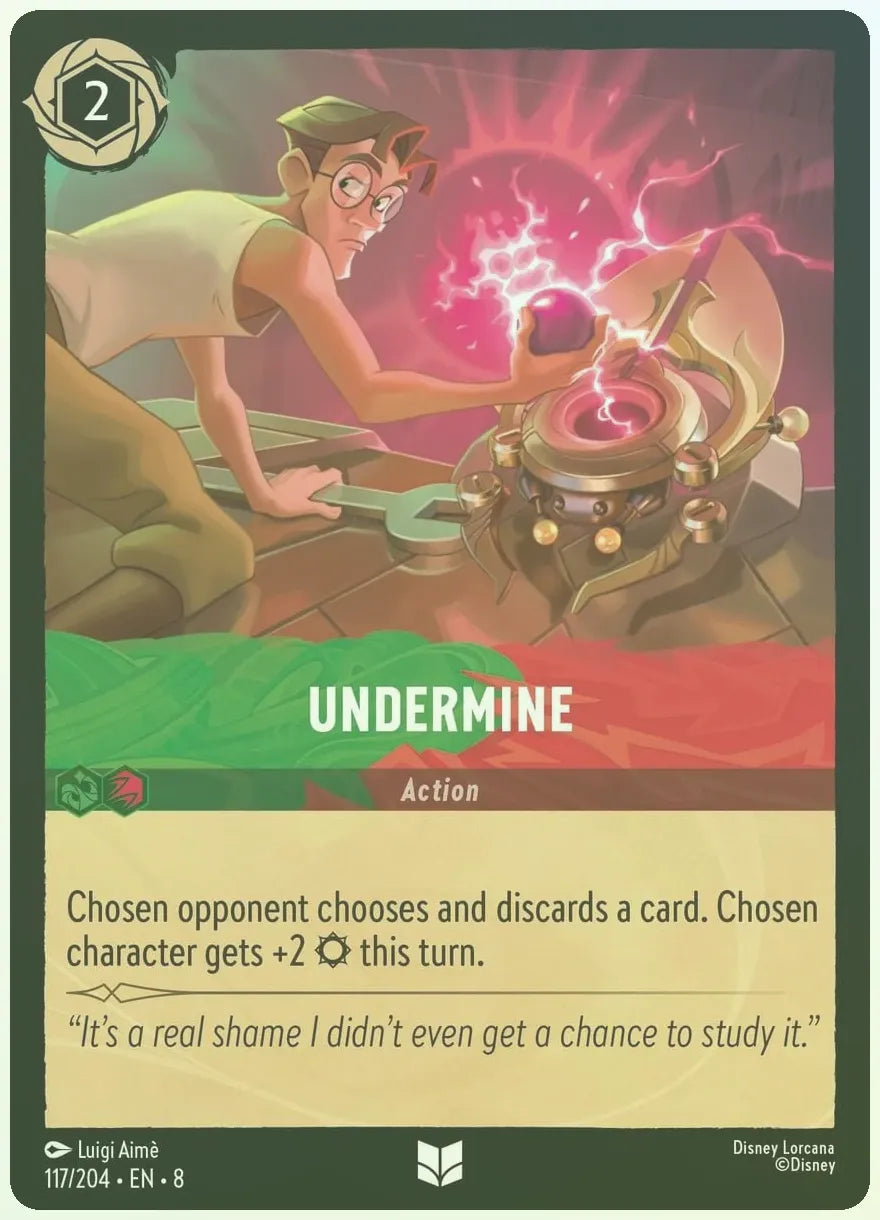 Chosen opponent chooses and discards a card. Chosen character gets +2 this turn.