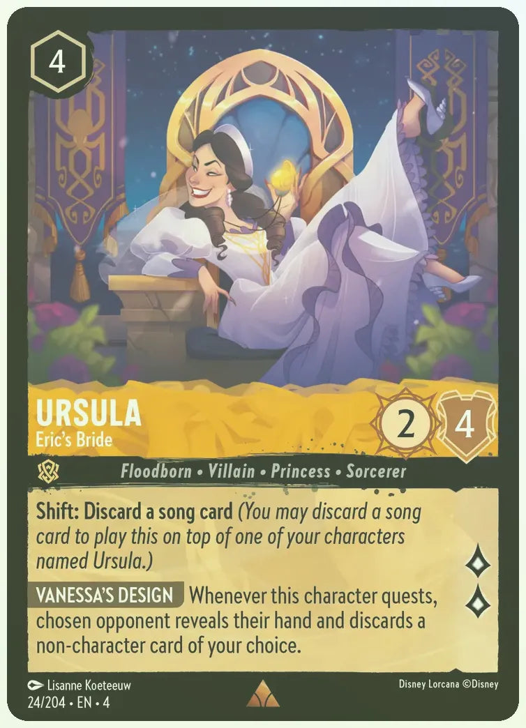 Shift: Discard a song card (You may discard a song card to play this on top of one of your characters named Ursula.)