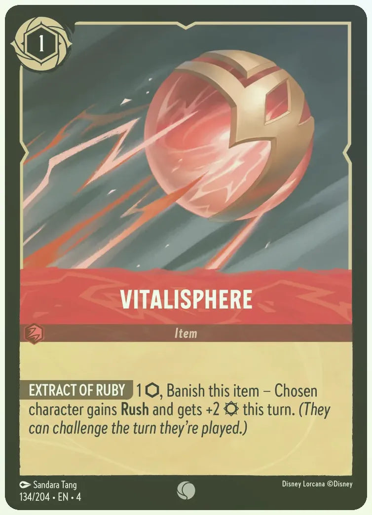 1 ink, Banish this item - Chosen character gains Rush and gets +2 strength this turn. (They can challenge the turn they're played.)