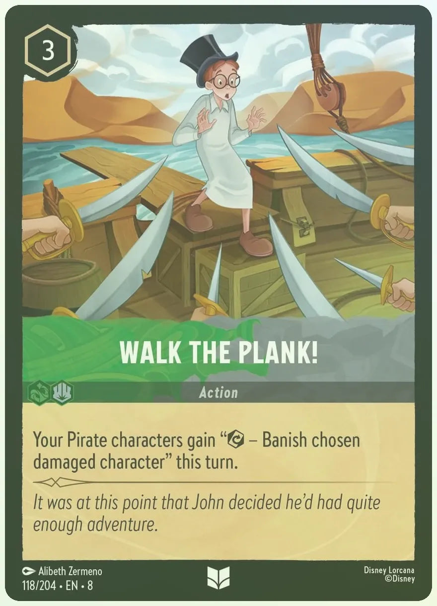Your Pirate characters gain “ – Banish chosen damaged character” this turn.