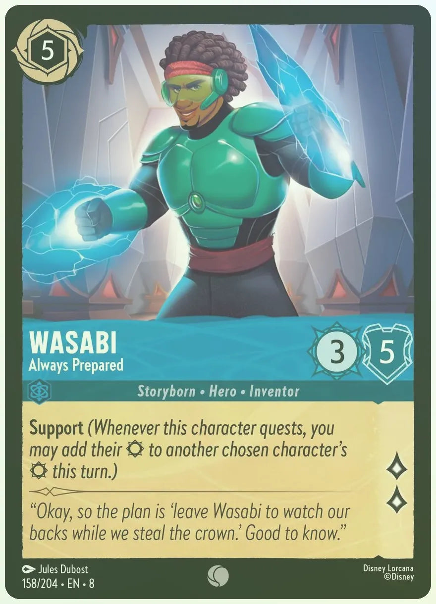 Support (Whenever this character quests, you may add their to another chosen character’s this turn.)