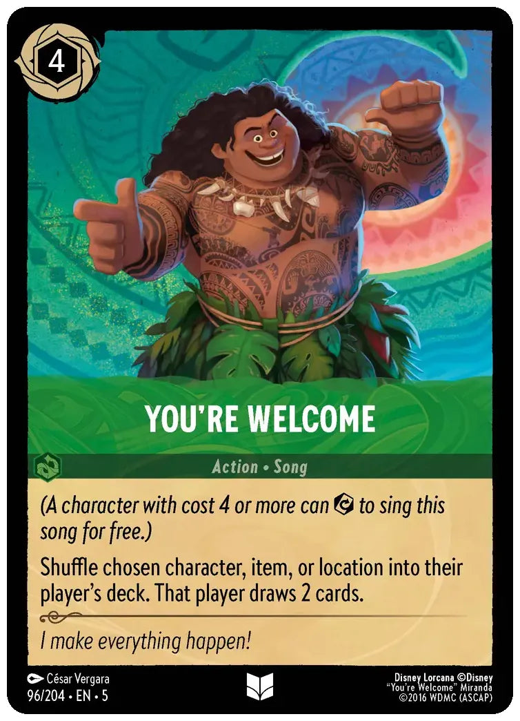 (A character with cost 4 or more can exert to sing this song for free.)